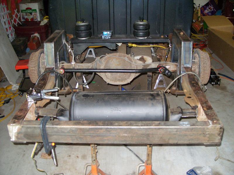 eckstinsive two link with panhard bar, drop spindles, 2600 firestone bags in front and 2500 in the rear 1/2 smc valves 1/2 line
