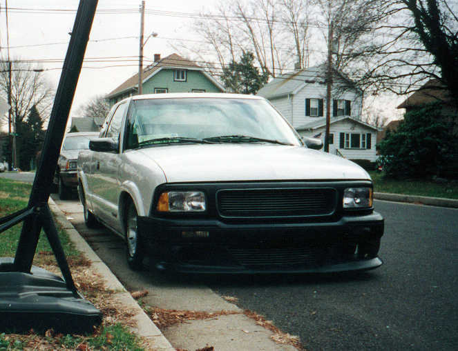 molded in Sir Michaels roll pan and shaved tailgate handle, antena, Street Scene mirrors, 97 GMC Sonoma front end-it just looks better, PIAA Platinum bulbs, Wings West air dam, upper and lower billet grills, Checkmate hard tonneau cover, painted rear frame, Euro clear taillights, LED 3rd brake light, smooth cowl