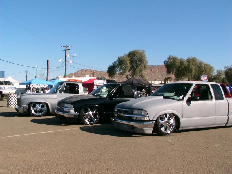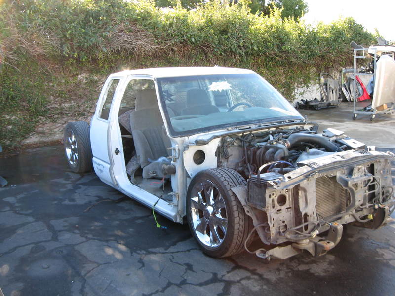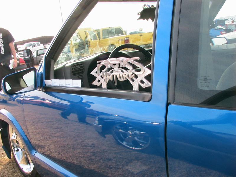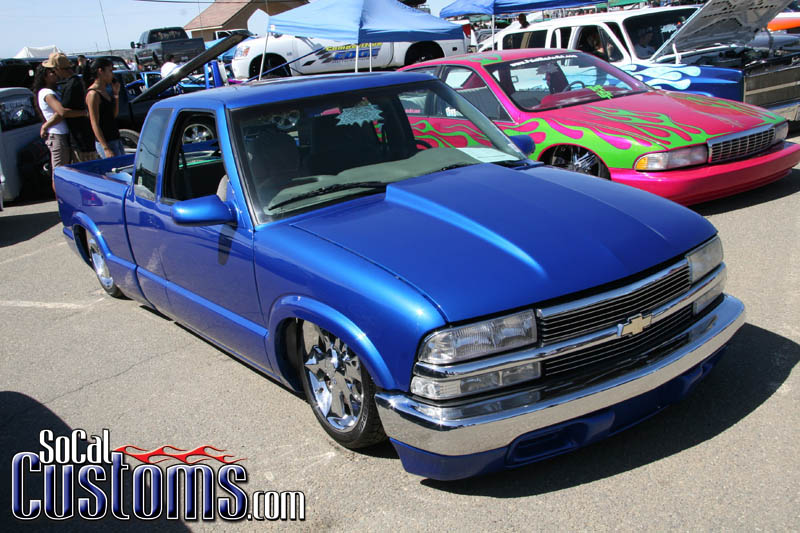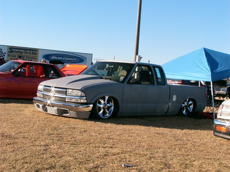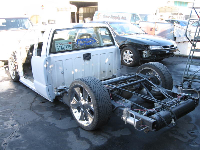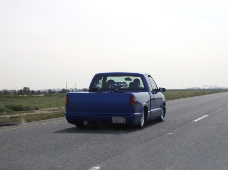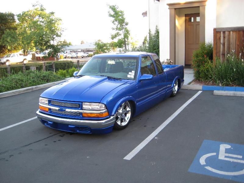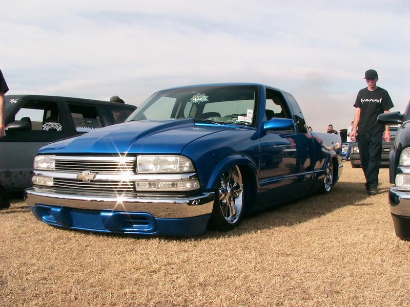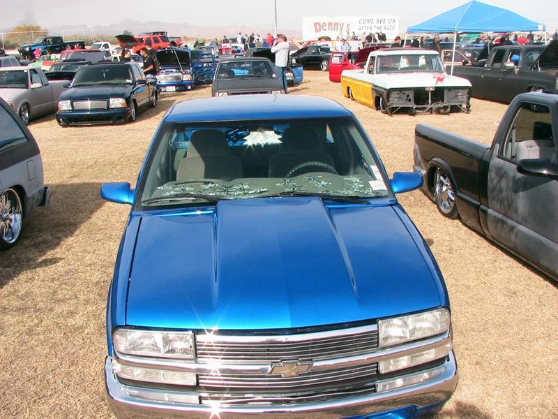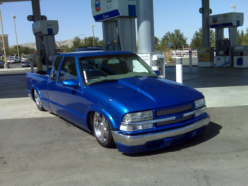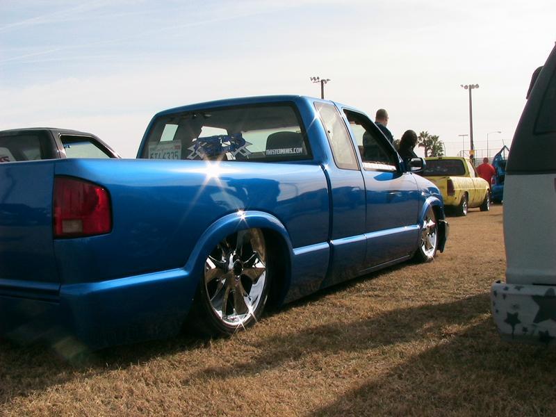 Shaved:---hood squirters, door handles, tailgate handle, molded Sir Michaels roll pan, bedrail corners, rocker seam, 3rd brake light, gas door, antenna. motorcycle gas filler in the bed rail. Raised bed floor 5" updated front bumper and valence. Subaru WRX blue paint, only the firewall was left OEM white. Everything done by me.