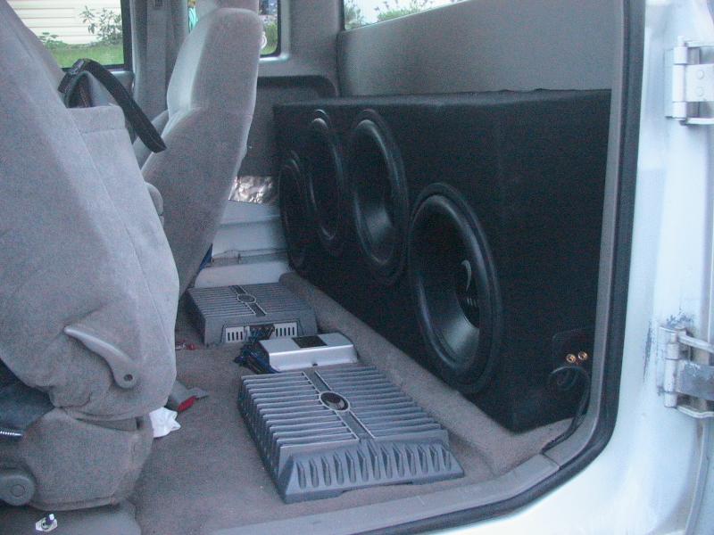 Sony Xplod Head unit, (4) Diamond Audio 12's in sealed box. (2) 801s Rockford Fosgate 800 watt RMS amplifiers, 5 farad Alumapro capacitor, Infinity Mids and Highs