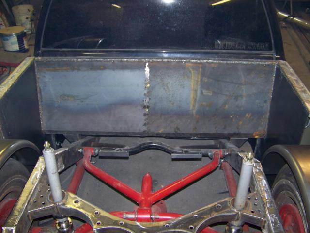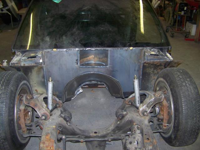 350 engine with a 350 trans beaf uped a little, lol only gonna run like 600 ponies, smooth firewall and huge azz dubs for nice azz wheels