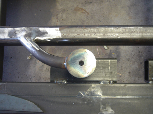 Marking each body mount location with a threaded rod and bolt welded to the table