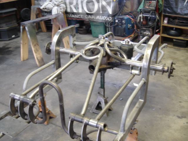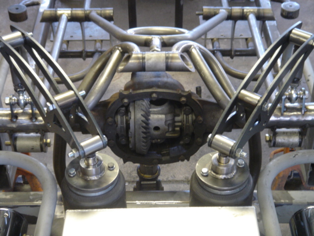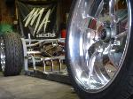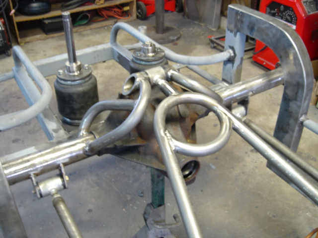 2 pump Hydro setup, 2 dumps. Hydro/air setup at all 4 corners. The air bags will be filled at a set PSI, which will allow for an adjustable spring rate, so i can adjust it to hard or soft depending on what kind of ride i want that day. The rear is in a cantilever form, with the cylinders flipped upside down..... Control arms by barelylegalfabrication.com