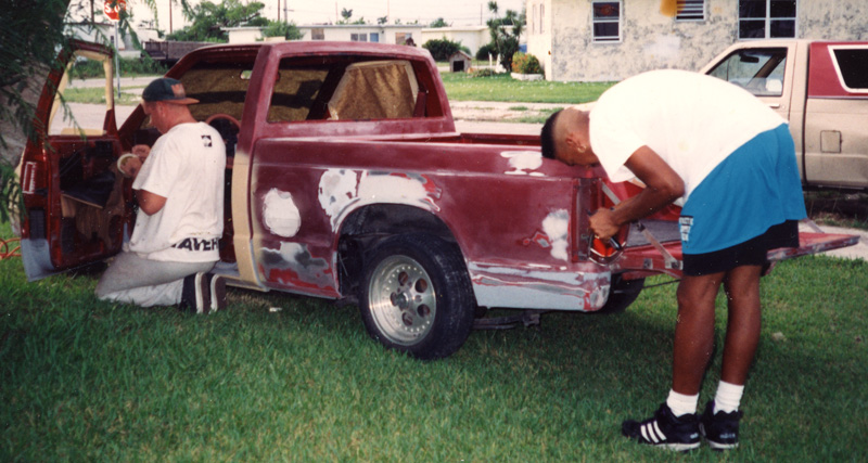My friends Dave and Dexter preping it for primer circa 1992