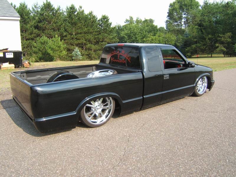 Modified stock control arms, 2b6 bags front, Sleeves rear, Custom front shock mounts for lock to lock steering, Wishbone 3-link out back, custom bridge work with polished rivets, Viair comps, 5 gallon tank, Easy St Digital management system, smc valves. Wheel tubs front and rear, Still has A/c. www.crazytalkcustoms.com
