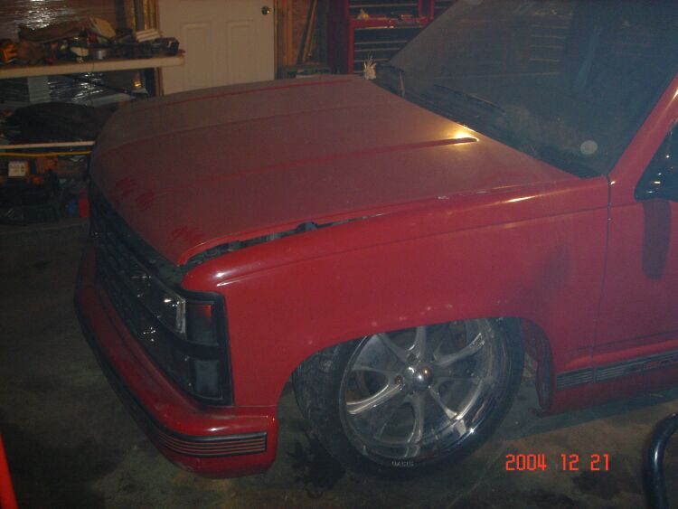 semi stock floor body dropped 5 in. with a stock hood shaved squirters antenna fuel door, tailgate handle, and third brake light.