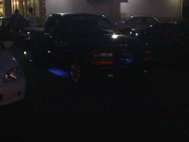 lightning bolt graphics done by Mister Sticker in San Diego, carbon fiber hood deflector, carbon fiber head light from a 98 BMW, and signal light covers,3 sets of strobes in head lights, clear euro tail lights, 3 sets of strobes in headlights 3sets of strobes in tail lights, 2sets of strobes in fog lights, blue under carrige neons all around, blue neon in grille and, flush top toneau cover.