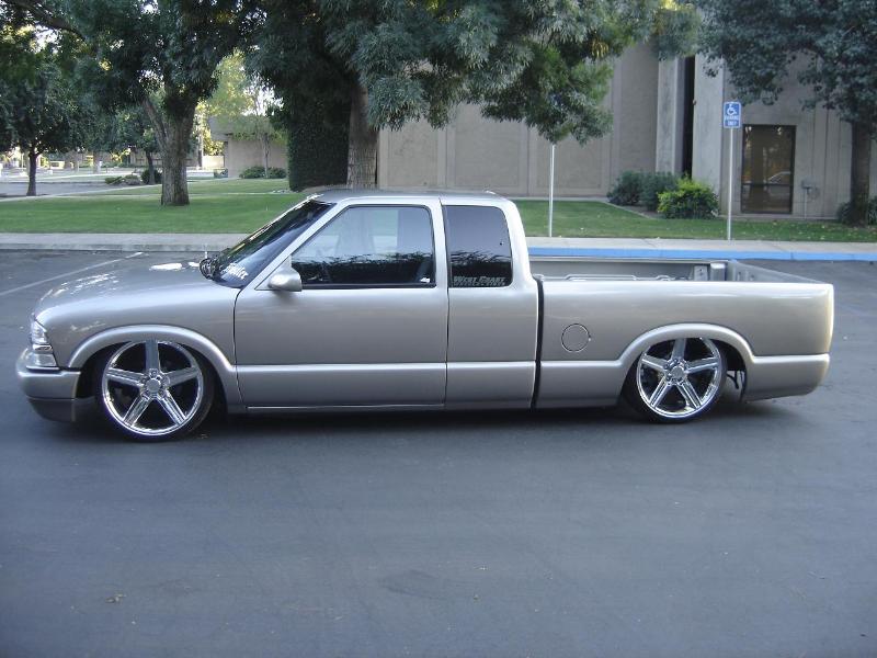 shaved doors, tailgate handle, welded on roll pan, caddy tail lights, clear headlights, billet grille,