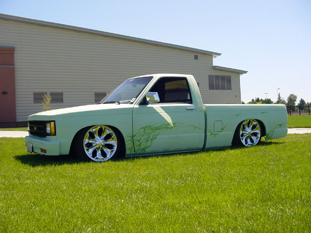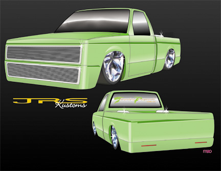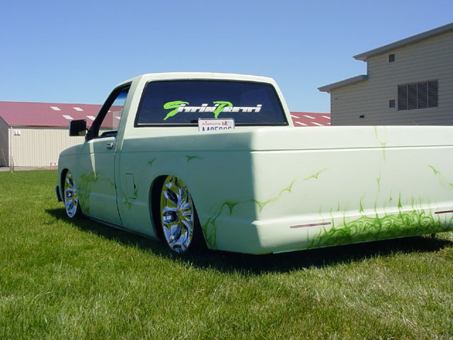 Shaved rear end, tails, skin combo with leds, and antenna for now. The entire truck has been straightened and primed light green with custom airbrushed realistic flames and some hidden skulls, all done by me.