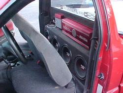 4 10" orion XTR4s DVC behind seat run off Orion HCCA2100 -Orion XTR 5.25" component set run off of Rockford Fosgate 2.6x -200 Amp Ohio generator alternator -deep cycle batery.Everything run from Pioneer DEH-825