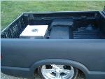 Shaved handles, gas lid, tailgate handle, mirrors with chopper mirrors, antenna, licence box in tailgate, smooth roll pan, 98 chrome front bumper, billet bowtie and grill, clear corners.