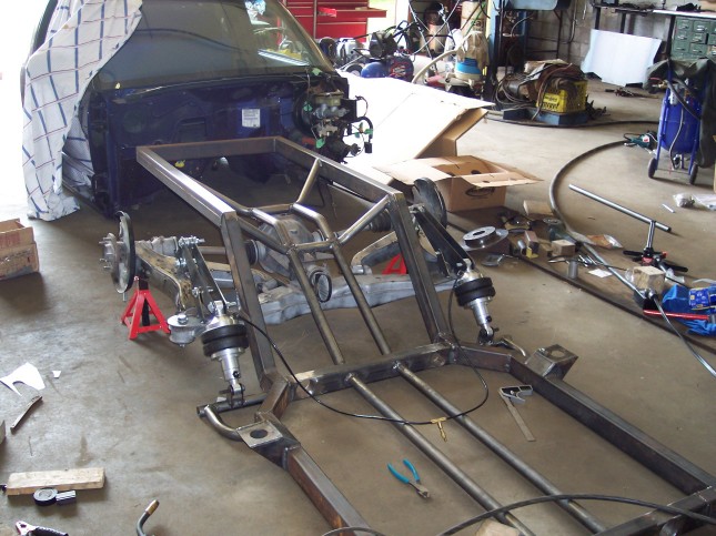 Under Construction...IRS, Stock Floor BD, New Wheels, etc etc... Total Rebuild. Chassis somewhat completed will be at Meltdown 04.