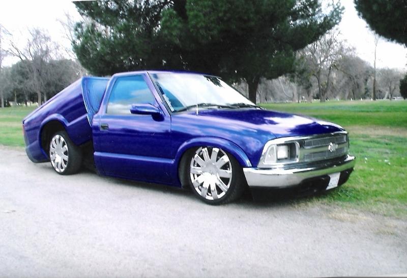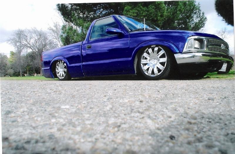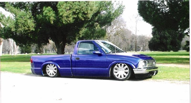 Shaved tailgate handle with relocator, third brake light, hood squirters, rollpan. 98 S10 front bumper, billet grill, clear corners & street scene side mirrors...SOLD