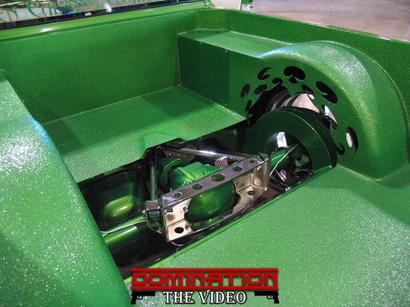 ALL CHROME KP 6 LINK, POWDER COATED TANKS, 1/2 INCH SMC VALVES AND HYRAULIC LINES THROUGH OUT THE FRONT AND BACK. SLAM'S ALL THE WAY AROUND. AND 3 380 VIAIR COMPRESSORS. OH YEA, CHROMING MY KUSTOM WERKS CONTROL ARMS UP FRONT.