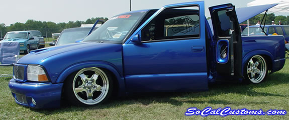 viper blue shaved lights gas door , handle all metal step shavers , LED lights under paint and a envoy front end all boddy work and paint done at WICKED KUSTOMS at 615-213-1910