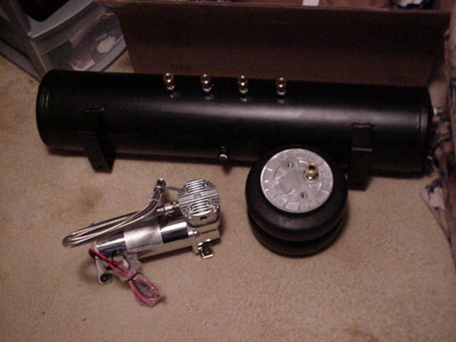 i have a superlift triangulated four link slam bags re-7 fronts and re-8 backs, viair 480 compressor, gc 3/8 valves, 9 port 8 gallon tank, 10 switch box, and starting to sfbd it hells yeah