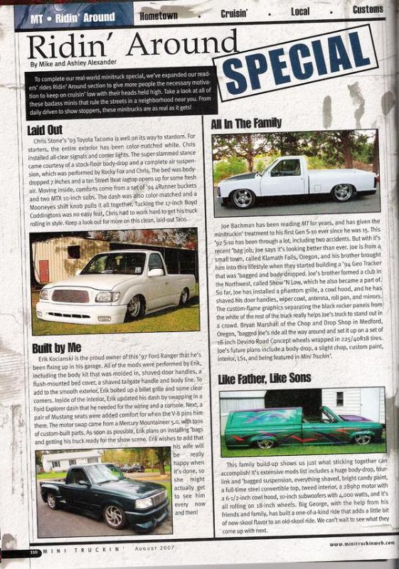 2" chop top, clean up the frame, nitrogen bottle, 4 runner front bumper, upgrade the stereo, FINISH THE TRUCK, show it and a MT feature etc...