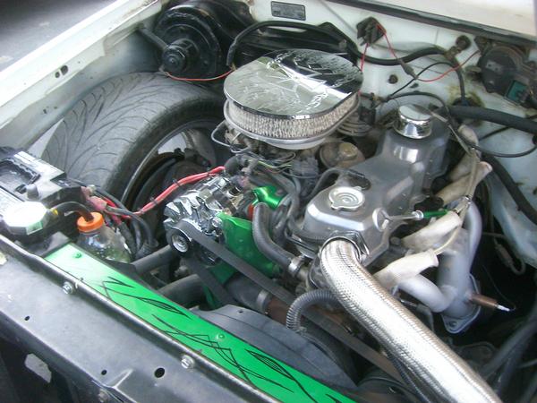 2.5l 4 cyl: billet air cleaner with k&n filter, deleted cat, flowmaster muffler with a turn down tip, Champion plugs, Accel Steel braided 8mm wires, DEI spark plug insulators, clifford ceramic coated header, billet overflow bottle, GM performance billet valve cover, power master hi output chrome alternator, ford taurus electric fan, steel braided radiator hose, painted dipstick tube, custom painted/pinstriped fan shroud, misc painted brackets, KB 30over flat top pistons, port matched, balanced, custom ground cam, cloyes timing gears