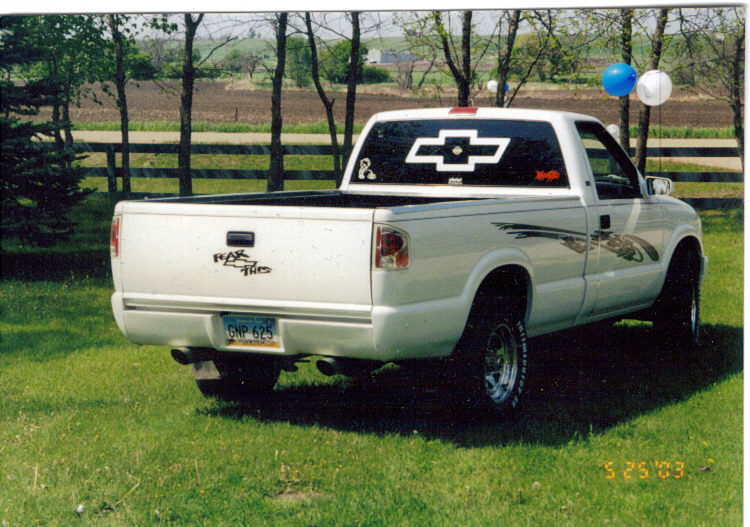 Repainted factory white, shaved rollpan, euro taillights, rhino bedliner, tinted windows, painted to match front bumper and street scene valance, clear corner lights, sport mirrors