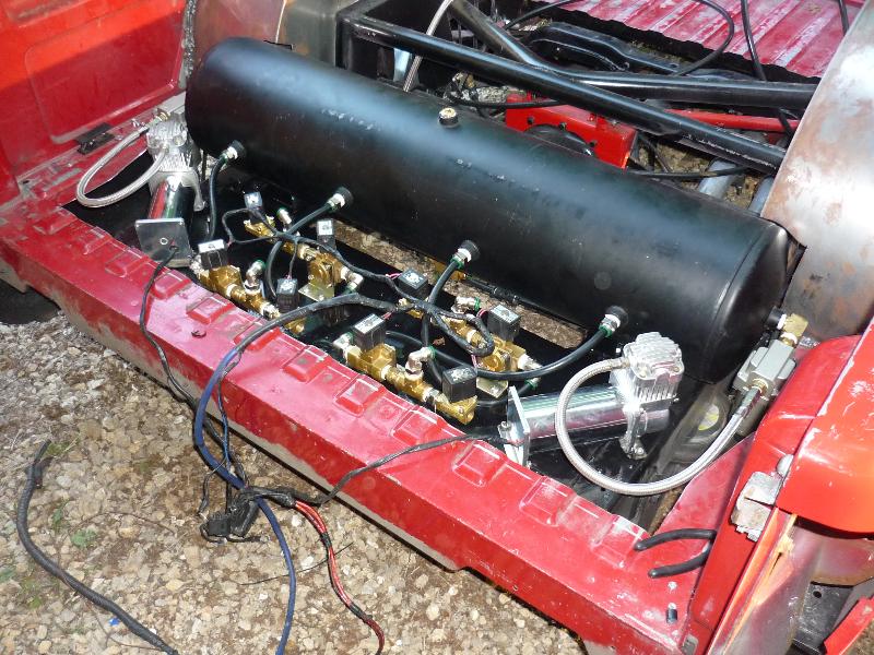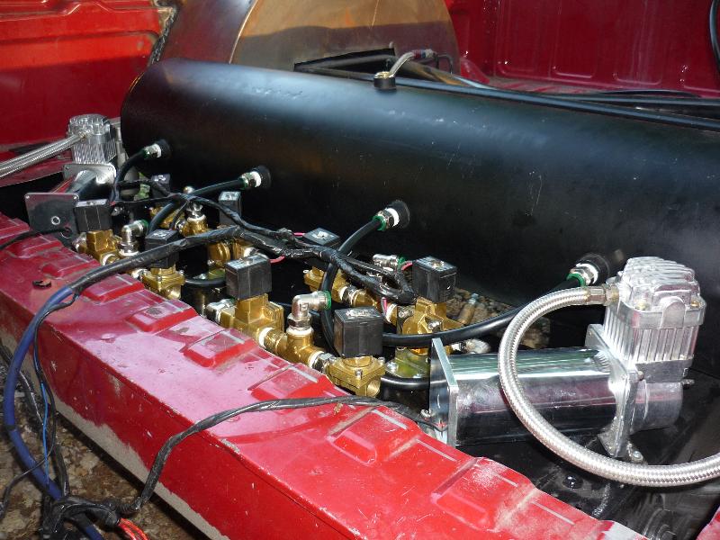 Firestone Bags with 4 1/2 SMC Valves and 4 3/8 SMC Valves. 4 Link with bags behind the rear end.