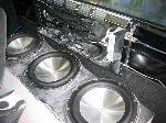 Pioneer Deck, Pheonix Gold 4-Channel, Diamond Audio M5 Mids and Tweets, AudioBahn HCX2300, 3 AudioBahn Alum12qs.