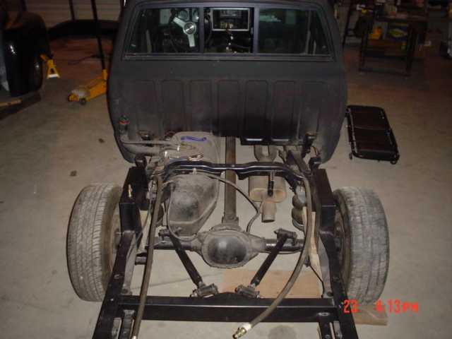 3 3/4" stock floor body drop, primer black everything shaved, doors, tailgate windsheild wipers ect.