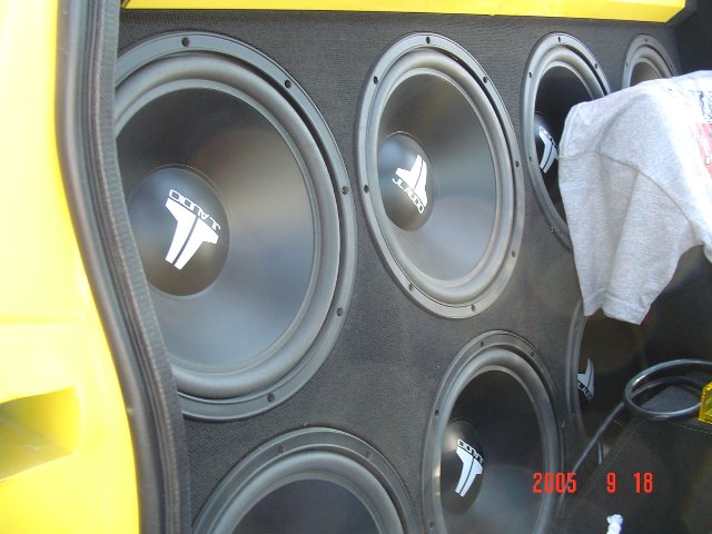 Too loud, 8 12" JL W0's in a wall with Xtant amps.
