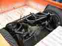 Custom Toyota front bumper, functional ram-air hood, shaved emblems, Bright Tangerine paint, Sport mirrors, Billet grilles and billet bow-ties,shaved handles & mirrors, suicide doors