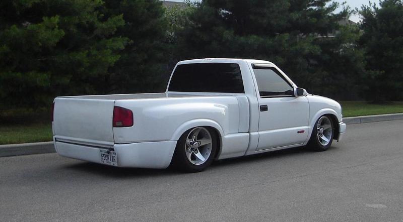 Goodmark style 2 cowl hood, APC clears with fogs, East Coast Customs smooth roll pan step shaver kit, shaved front steps, shaved tailgate handle, one-off custom license plate bracket, Checkmate hard bedcover, Street Scene Turn Signal Mirrors, 5% rear window, 15% sides, painted third brake light lens.