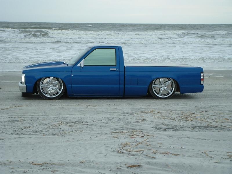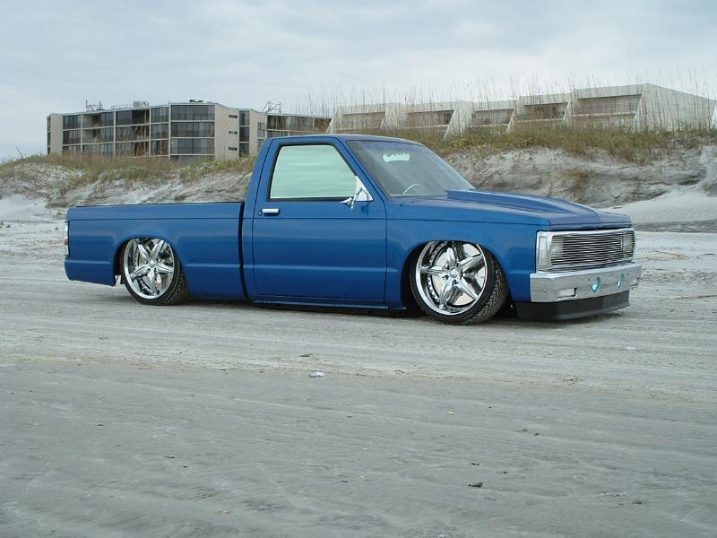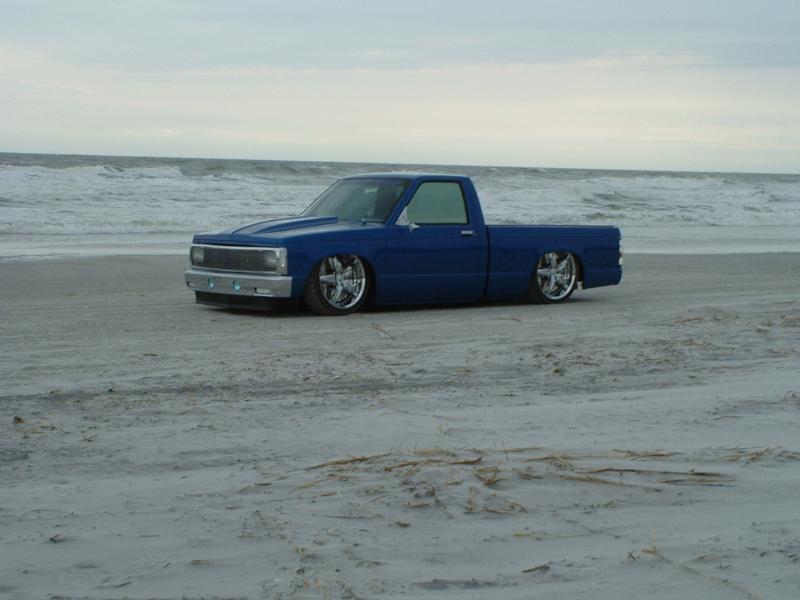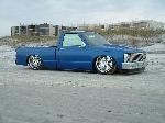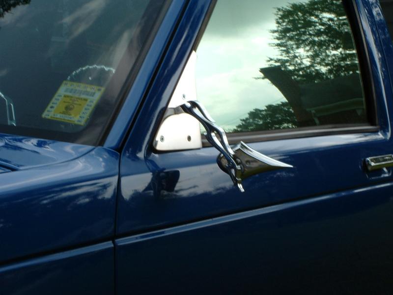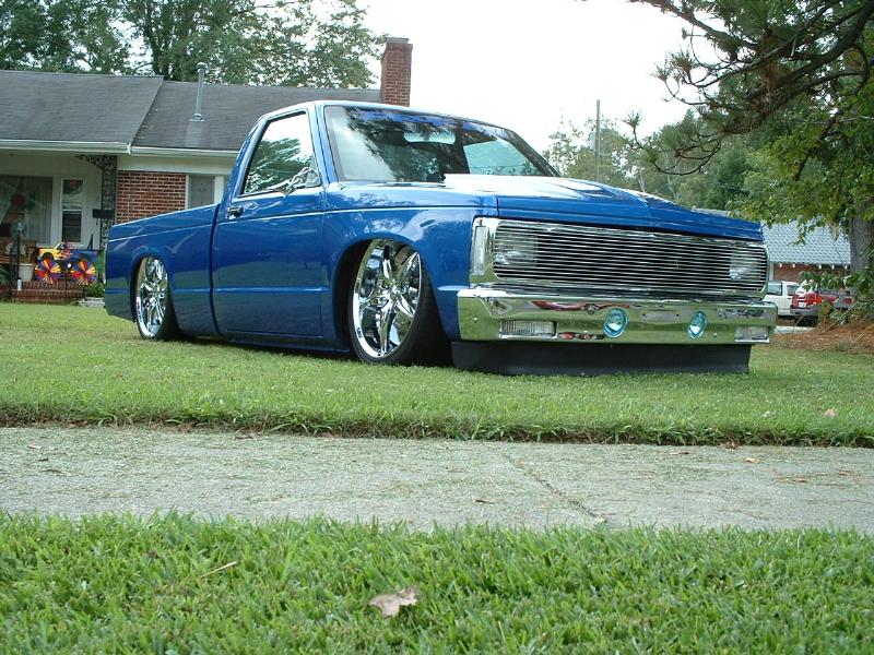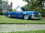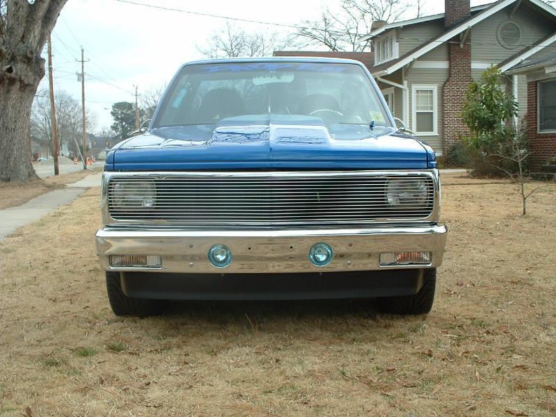 Debadged, shaved tailgate handle, molded rollpan, frenched antenna, phantom grille, smoothe chrome bumper w/ fog lights, Arlin Ness side mirrors, Goodmark cowl induction hood