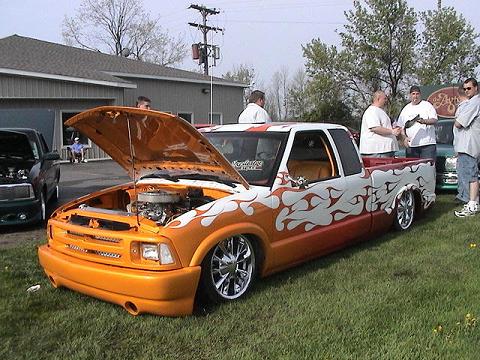 lights maltese cross mirrors. and a goodmark cowl induction hood. Molded in roll pan. CUSTOM BED PAN AND SHOCK MOUNTS, flamed grille inserts,color matched spray in bed liner