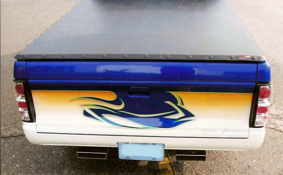 a phantom grill and tilt hood. Blue and White with Tribal flames