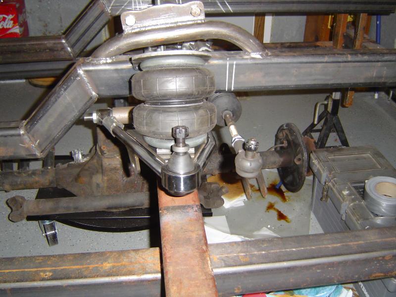 Modified Fat Man Fab mustang ii IFS. 54" track width. Stainless control arms. Manual Rack and Pinon. Wilwood Dynalight front brakes. Moser 9" rear. 3.70 gears.