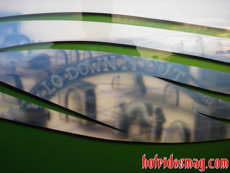 shaved, LED tails, sliding rag, RAW smooth wiper cowl, grasshopper green/white with blue shimmer pearl -
