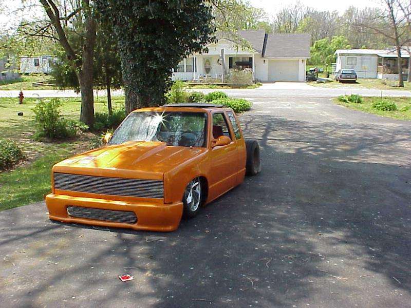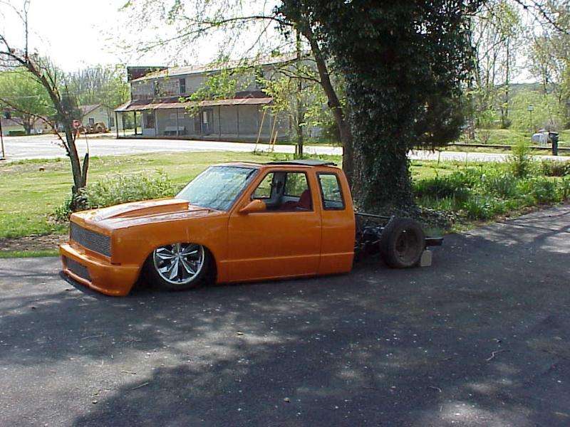 3 1/2", )body drop, 3" choptop(not in pics, shaved taillights,doorhandles,tailgate handle, tailgate, antenna, wiper cowl, front corners, cab seams, body line,front blinker,and gas door, toyota 4wd front bumper, phantom grille, cowl hood, house of kolors sunset pearl, 40x35 sliding rag top