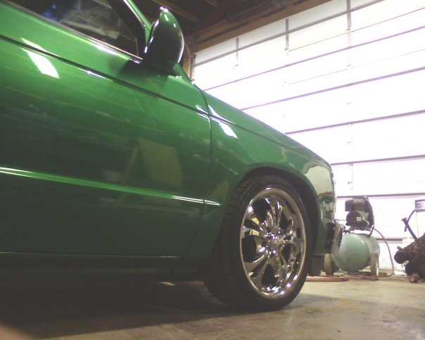 2002 Ford Mustang Green.. Customized with added pearl. Shaved.. Antenna, Handles, Rear Tail gate With Frenched Tilted License plate. After Market SS Mirrors. Euro Tail Lights