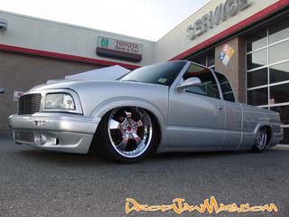 GMC front end,,,billet grilles upper and lower,street scene 2 valance,aftermarket hood,,shaved ant,rollpan,3rd brake light and tailgat handle