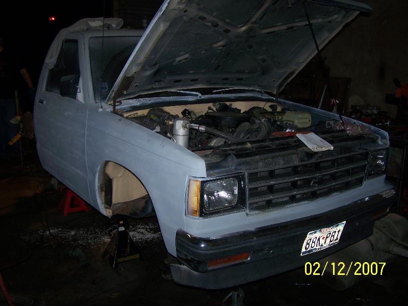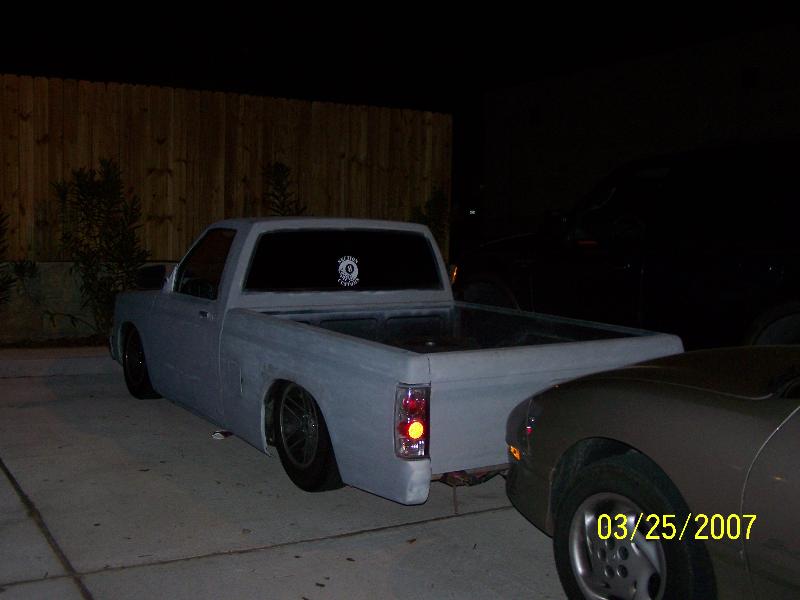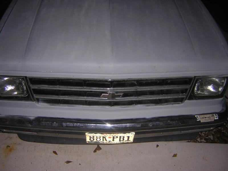 Primer grey, euro tailights, chrome front grill, lots of overspray but that will be gone soon