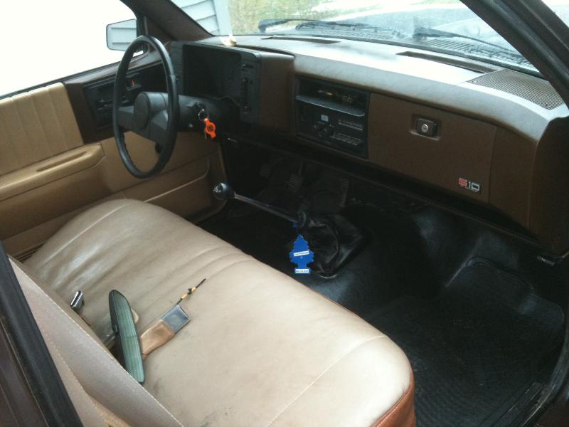 Bare bones truck. Bottom of bench reupholstered, cigarette lighter added, CD player in glovebox- AM radio still in the dash, Astro van steering wheel, replacing the floormat with carpet this spring