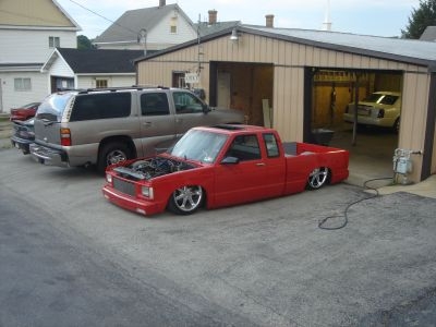 slam bags with a cantilever setup, custom triagulated four link and brackets, backhalf and crossmembers are the air tank and hold about 9 gallons