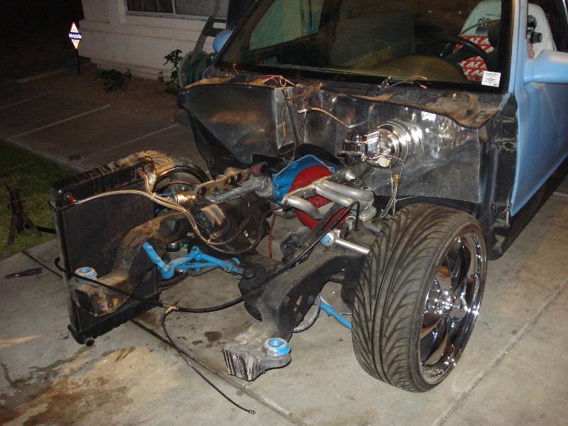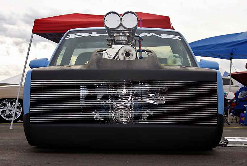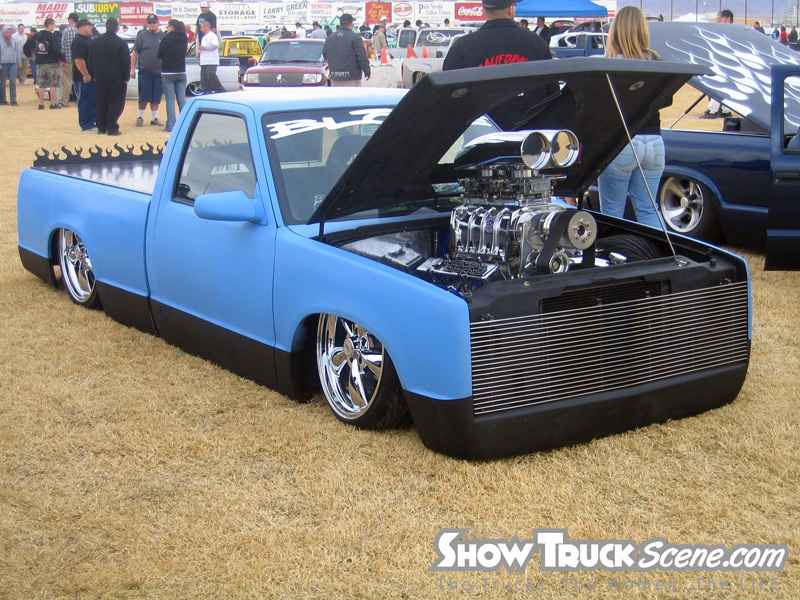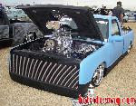 everything shaved,bodydropped,6 inch cowl inducted hood,full size blazer billet grill cut down & front end molded to fit ,flames cut in hood & custom skid plate