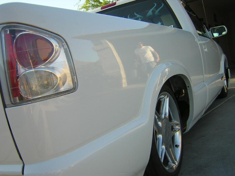 colormatched door handles, shaved tailgate, rollpan smoothed in, colormatched grill and bumber, euro taillights.