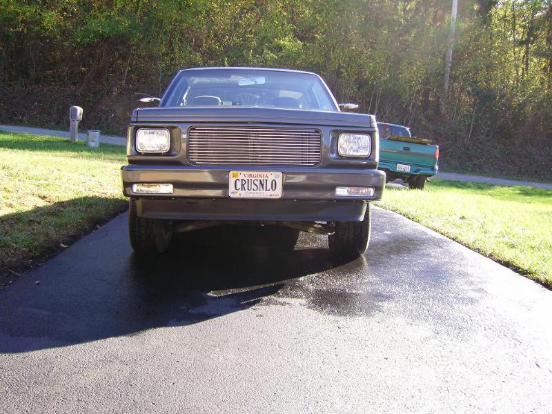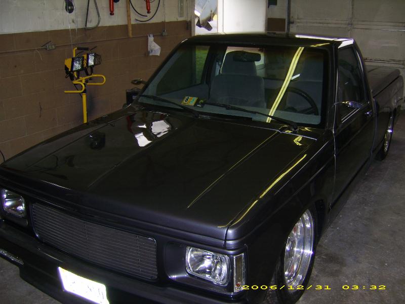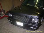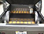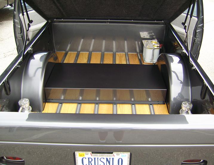 Stock gas door moved inside the bed, sheet metal'd bed walls and oak plank bed floor. 92 gmc jimmy grille w/billet insert