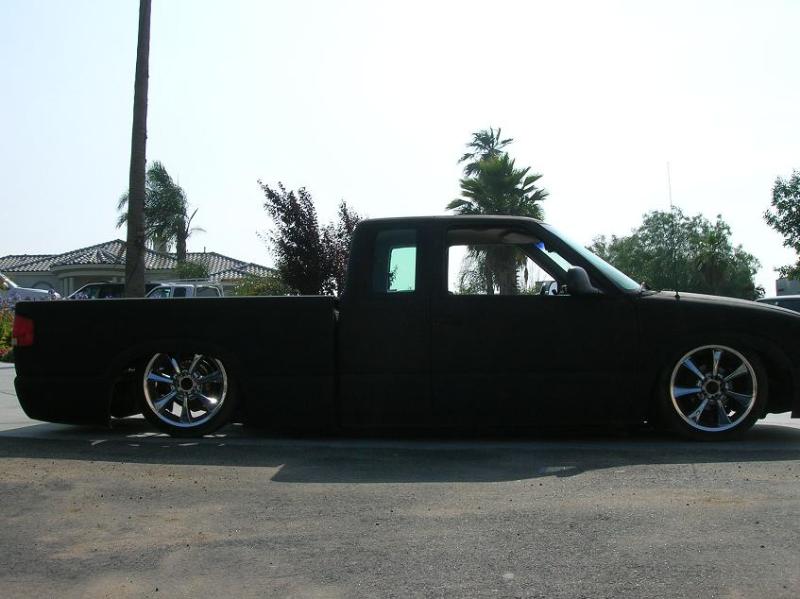 shaved third brake, tail gate, smooth roll pan, relocated lic box, hood squirters, primered black with pinstripping