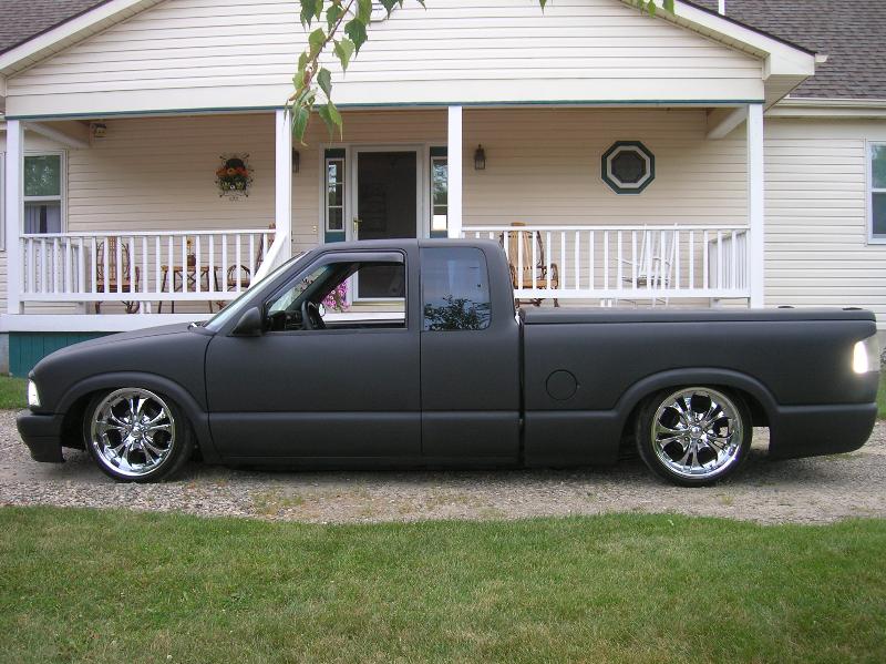 Shaved door handles, tailgaite handle, antenna, hood squirters, third brake light, bumper lights, and a welded in roll pan.