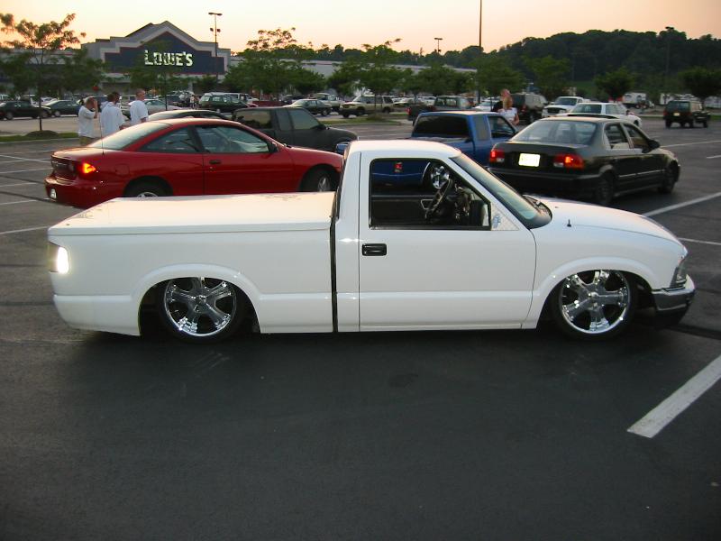 shaved rear end, roll pan, frenched tag box, billet mirrors with diamond plate panel, clear rear lights,clear corners,