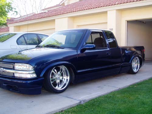color matched-ss electric mirrors, door handles, front grill bezel, billet grill, billet bow tie, tyc cf tails, shaved gas door, shaved tail gate handle, shaved front step pads, shaved rear steps, roll pan, smoothed out bed, color matched washer squirters, apc diamond healamp housings, inpro diamond clears, custom led third brake light, *in process of body drop*