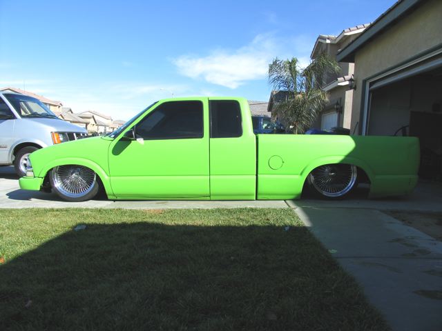 PRIMERED BRIGHT KAWASAKI GREEN NOW shaved emblems,doors,tailgate rollpan combo, tailgate handle, etc moldings.. euro tails until I shave them. im working on caddy tails and finishing the shaving