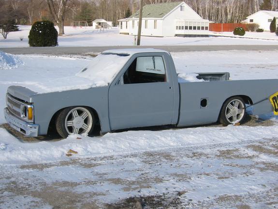 6-3/4" body drop. still in the project stage. Recently primed it but have to touch up the shaved body lines and cut the rockers off and 3/4 of the door off as well.