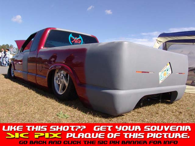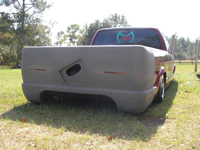 Shaved antenna. gas door behind tag. fully 18 gauge sheet metal bed floor. Suicided Doors. chrome motorcycle mirrors, and billet ball milled wipers.